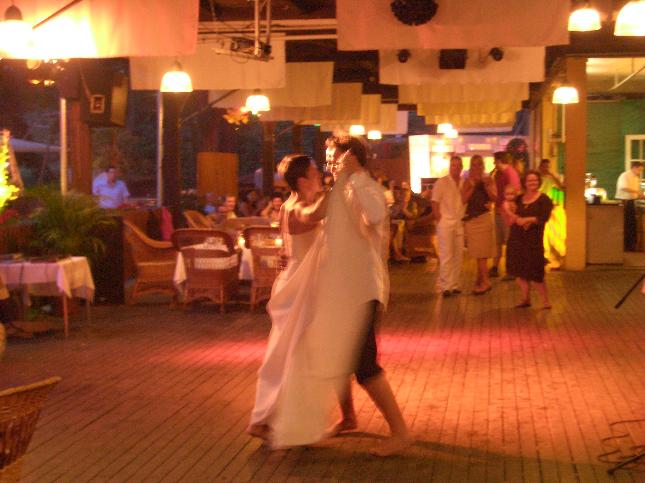 The wedding was just amazing. The invitation said regarding to "dress code": Dress YES - Code NO - just wear something that makes you feel comfortable. So I ended up with white pants, a polo shirt and my slippers - so did most of the other guests. But most of the guests who also danced (including alex and me) didnt have their shoes on for a long time - we danced bare foot. Anyway - it was just a blast - the location as well as the wedding party - which really was just a big party!!