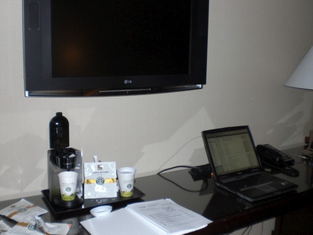 Anyway - besides being in Starbuck-City I also enjoy a Starbucks Instant Coffee in my hotel room. This kind of became a regular routine of mine - having the instant coffee in my hotel rooms. The sun is rising over the city of Seattle. Today I will actually drive out to Redmond - to the Microsoft main campus - in fact - I need to drive out there every day of my stay - lets hope its an easy commute.
