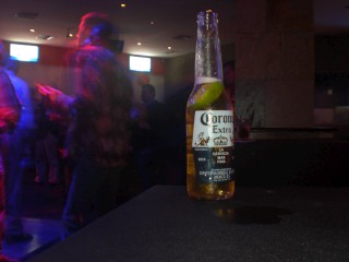 | My late night dinner: Corona Extra - Fruits and Beef Jerkyo |