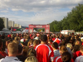 Its been a great night at the official Euro 2008 Fanmile in Urfahr. It took me almost an hour to get into the area because so many people wanted to get inside. Austria was lucky in the first 10 minutes where Germany had 2 or 3 good chances to score. After that we played really well - but - as in the previous matches - none of our strikers took the chance to score.